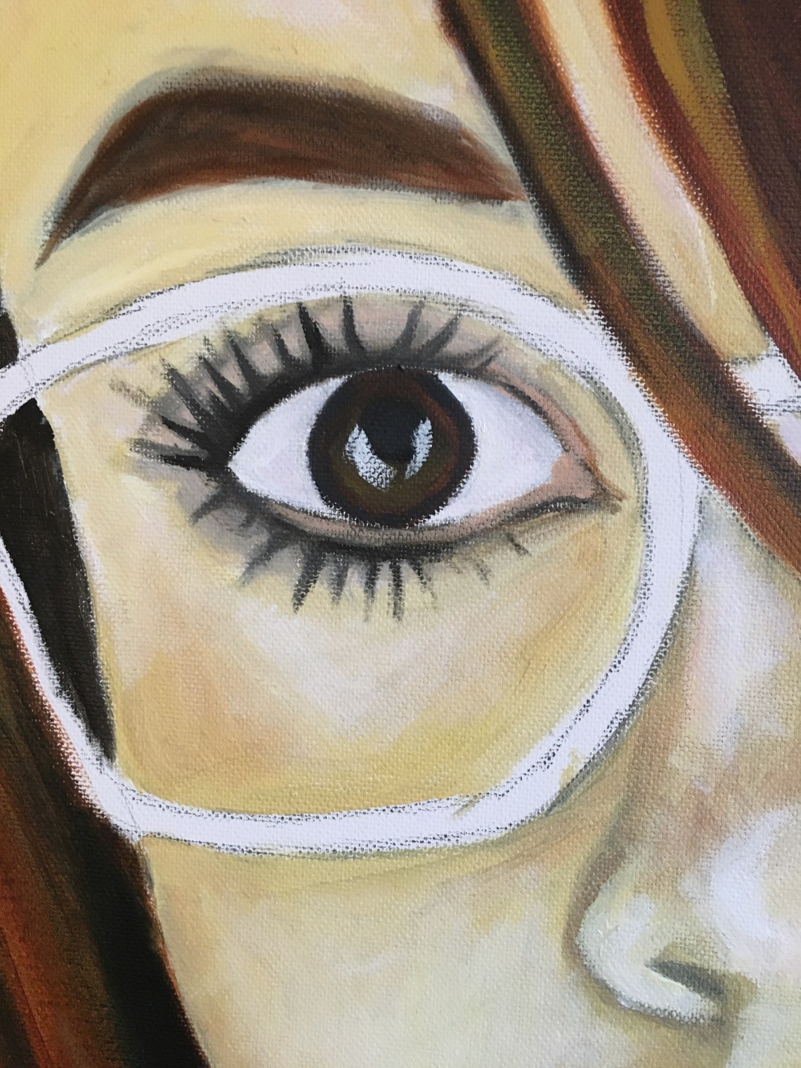 I have started working on some of the details in the painting now such as the main eye and the lips